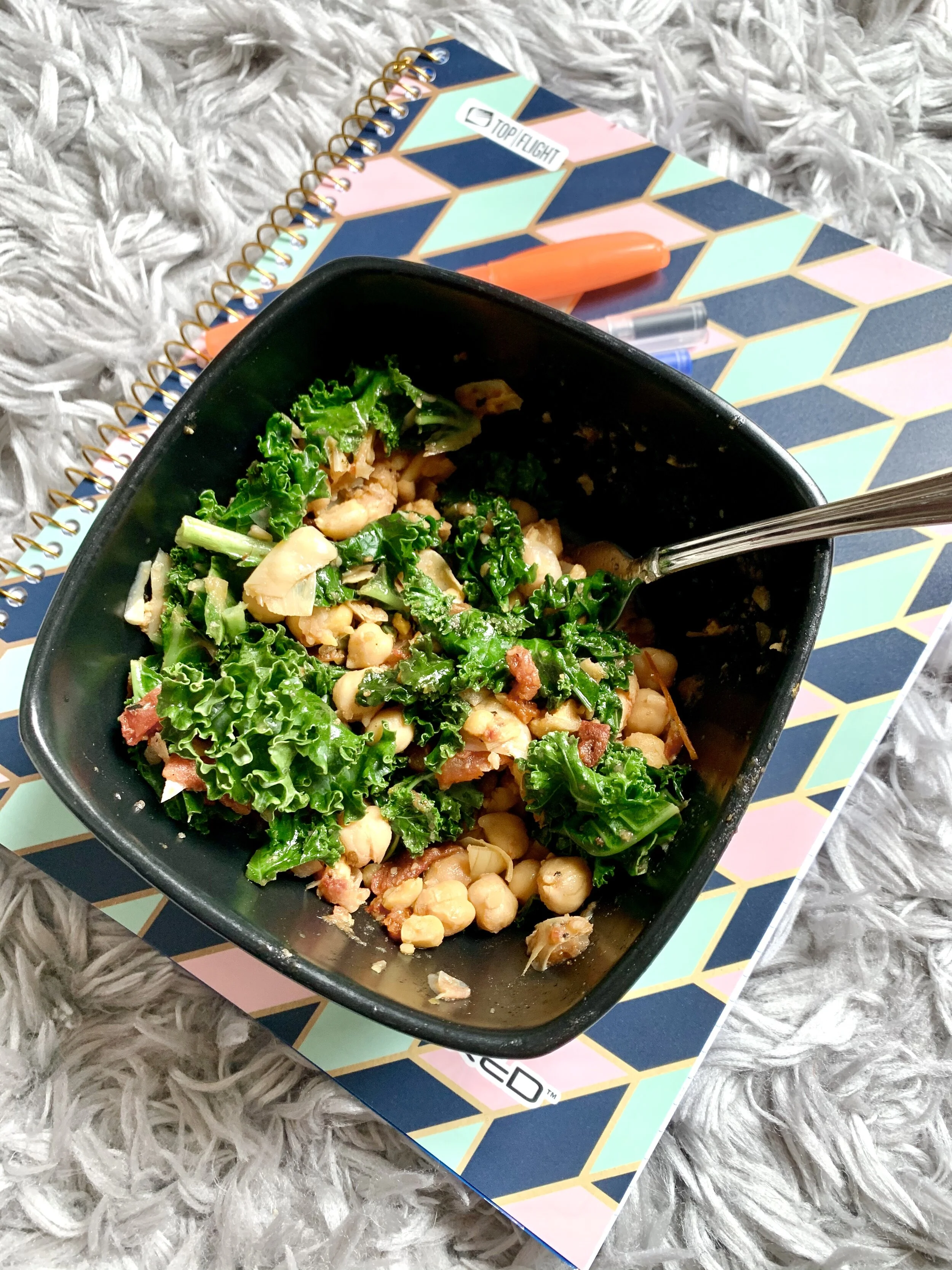 Add kale or greens in the last few minutes - give them just enough time in the skillet so they wilt but maintain their color and some structure